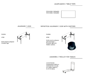 Lisavarustusena saadaval ka lauakäru kuni 12 laua transportimiseks ja hoiustamiseks.