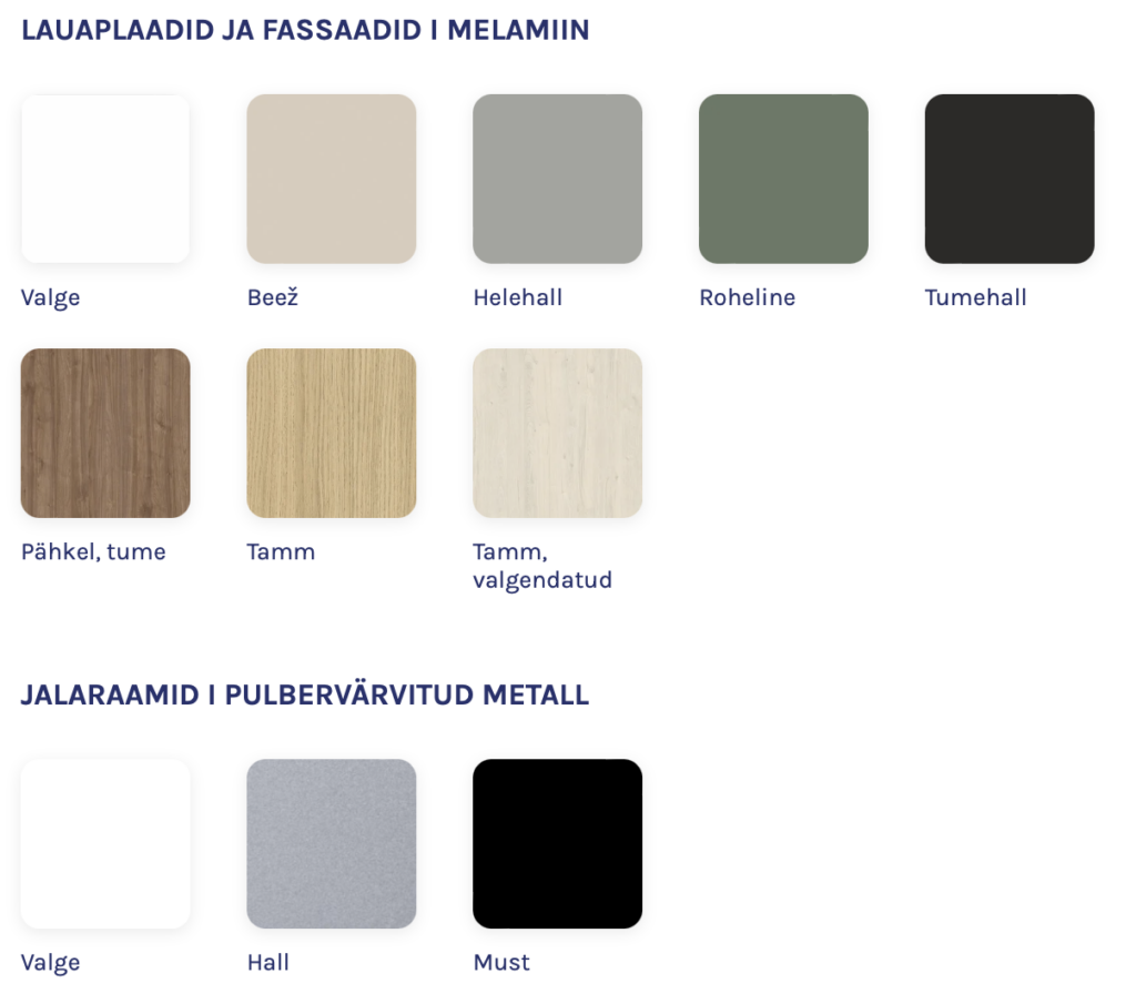 - Sobilil lauaplaatidele laiusega 1000-1800 mm (sügavus 600-800 mm)